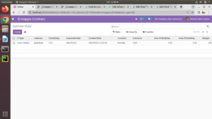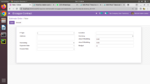 <record id="enzapps_contract_tree_view" model="ir.ui.view"> <field name="name">enzapps.estimate</field> <field name="model">estimate.contract</field> <field name="arch" type="xml"> <tree> <field name="p_type"/> <field name="address"/> <field name="furnishing"/> <field name="expected_date"/> <field name="created_date"/> <field name="location"/> <field name="currency"/> <field name="area_of_building"/> <field name="area_of_building"/> <field name="budget"/> </tree> </field> </record> Result will be as follows:Additional features(2) If you want to add One2Many for more product details for your form, you can add one field with type One2Many in existing class(estimate_contract.py) and create new class and add fields in new class syntax:
